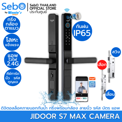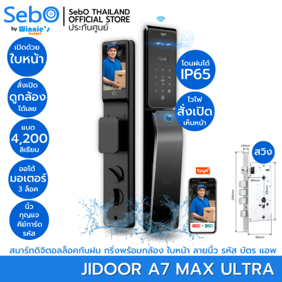 SebO JIDOOR A7 MAX ULTRA สมาร์ทล็อคประตูแบบมือจับที่เรียบหรูบนประตูดึงผลัก สั่งเปิดด้วยใบหน้า ลายนิ้ว บัตร รหัส กุญแจสำรอง ตาแมวพร้อมจอขนาดใหญ่ และแอพกล้องไวไฟสั่งเปิด พร้อมดูผ่านมือถือจากนอกบ้านได้ ปลอดภัยด้วยระบบล็อค 3 ชั้น