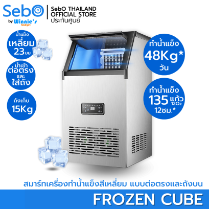 SebO FROZEN CUBE เครื่องทำน้ำแข็งสี่เหลี่ยม แบบใส จตุรัส 23มิล ที่ทนทานและเหมาะกับเครื่องดื่ม 48กก./วัน* ถังเก็บ 15กก.