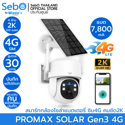 SebO PROMAX SOLAR Gen3 4G สมาร์ทกล้องพร้อมแผงโซล่าเเบบใส่ซิม พร้อมแบต 7800mA ใช้งานนาน 20 ชม. - 30 วัน คมชัดระดับ 4M ซูมไกล 30 เมตร แจ้งเตือนคนพร้อมระบบไซเลนและบันทึก ดูสดและย้อนหลังฟรี ความละเอียดกล้อง 4ล้าน 2560x1440 2.8มม. 120องศา แผงโซล่าชนิด monocrystalline ขนาด 5 วัตต์ สาย Type-C 1.6 เมตร แบตเตอรี่ ลิเธียม 7800mA ภายนอก IP65 กันฝนได้ บันทึกภาพและเสียงเมื่อไม่มีเนท ซูม 8x กลางวัน 30 เมตร กลางคืน 30 เมตร แจ้งเตือน แบบไซเลน ดัง 90dB แจ้งเตือนแบบต้อนรับ บันทึกเสียงตัวเองออกลำโพงได้ พูดคุยสนทนาระหว่างแอพและกล้องได้ เชื่อมต่อ Alexa ได้ เชื่อมต่อ ซิม 4G/5G ทุกค่าย ความเร็วขั้นต่ำ 10Mbps. บันทึกบนเมม 128Gb. 10วัน - 300 วันขึ้นกับการตั้งค่า ตั้งความละเอียดบันทึกได้ มีแถบแจ้งเตือนเมื่อเจอคน ง่ายเมื่อดูย้อนหลัง ดูย้อนหลังผ่านคลาวด์(มีค่าใช้จ่ายเพิ่ม)ดูย้อนได้เมื่อกล้องหายหรือถูกทำลาย ตั้งโซนแจ้งเตือนเองบนจอได้ ตั้งโหมดกลางคืนภาพสี 24 ชม. ส่องไฟ 4 ดวง ตั้งโหมดขาวดำ อินฟรา 4 ดวง ตั้งเปิดปิดเสียง ความดังได้ Google Assistance ได้เมื่อมี Google Hub เพื่อสั่งเปิดกล้องได้