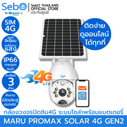 SebO MARU PROMAX SOLAR 4G Gen2 กล้องวงจรปิด ใช้ระบบ 4G ใส่ซิมอินเตอร์เน็ต มีโซล่าเซลล์พร้อมแบตเตอรี่ในตัวสามารถใช้ภายนอกได้