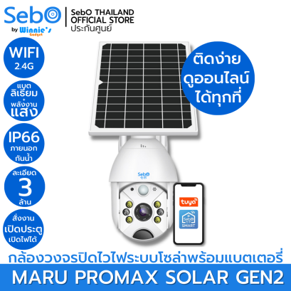 SebO Maru Promax Solar GEN 2 กล้องวงจรปิดมีโซล่าเซลล์พร้อมแบตเตอรี่ในตัว ใช้ระบบ Wi-Fi สามารถใช้ภายนอกได้ ทนแดด ทนฝน กันน้ำ