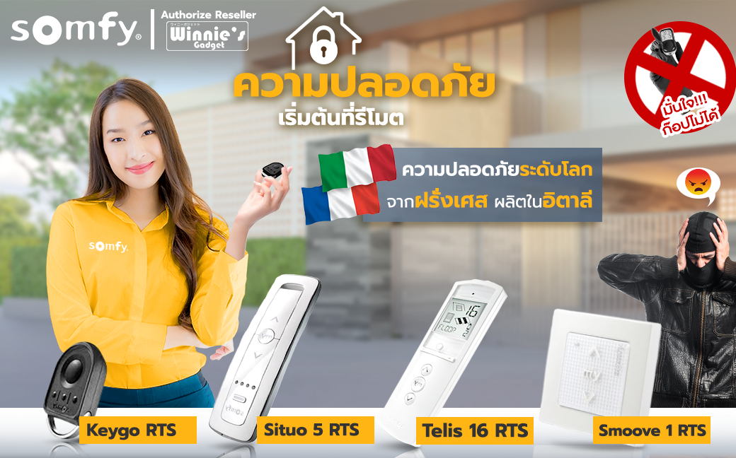 ควบคุมการทำงานของอุปกรณ์ RTS 4 อุปกรณ์ รีโมทควบคุมการทำงานของอุปกรณ์ somfy RTS ระยะ 100 เมตร รีโมทควบคุมการทำงานของอุปกรณ์ somfy RTS ระยะ 100 เมตร ที่มีความปลอดภัยสูงสุด