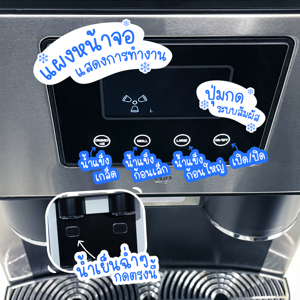 • คนที่กลัวน้ำแข็งไม่สะอาด เครื่องนี้ต่อตรงกับเครื่องกรองน้ำ และยังไม่ต้องใช้มือหยิบหรือควักน้ำแข็งเองอีกด้วย กดที่ตัวเครื่องเอาได้เลย