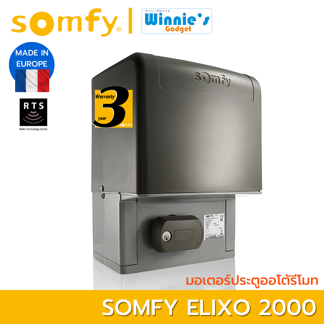 Somfy Elixo 2000 RTS มอเตอร์ไฟฟ้าพร้อมตัวรับรีโมท RTS สำหรับประตูรั้วแบบเลื่อนรองรับน้ำหนักประตูสูงสุด 4,000 กก. ✅ ประกันศูนย์ Somfy Thailand โดย บ.วินนีย์สมาร์ทโฮม บ.คนไทยที่ดูแลลูกค้าให้คำแนะนำการใช้งานให้ตรงความต้องการ มีคู่มือภาษาไทย มีทีมเทคนิคและวิศวะกรไฟฟ้าด้านเทคโนโลยีคนไทย ให้คำปรึกษา และสามารถส่งซ่อม ดูแล แนะนำ ทั้งที่อยู่ในประกันและเมื่อหมดประกันแล้ว เรามีอะไหล่ ทีมช่างซ่อมผู้ชำนาญ ยินดีให้บริการคะ ✅ เรามีทีมแนะนำการใช้งาน และติดตั้ง ตามความต้องการ บริการปรึกษาฟรีคะ เวลาทำการ 9.00-17.30 ทุกวันนะคะ ✅ เรามีขายส่ง ทักแชตได้เลยนะคะ ✅ เรามีบริการช่วยเหลือบริการทีมช่างติดตั้งทั่วประเทศ สอบถามราคาก่อนได้นะคะ ✅ เรามีสินค้าและบริการ กล้องวงจรปิด กล้องติดรถ ดิจิตอลล็อค ประตูรีโมท ม่านรีโมท ประตูออโต้ โซล่าเซล ด้วยนะคะ คุณสมบัติ ✅ มอเตอร์ไฟฟ้าแบบกระแสสลับ Somfy Elixo 2000 RTS อันดับ 1 จากฟรั่งเศส ✅ ผลิตที่อิตาลี* สำหรับประตูรั้วแบบรางเลื่อน รองรับน้ำหนักสูงสุด 4,000กก. ✅ มีหน้าจอแสดงผลที่ตั้งค่าพร้อมใช้งานและติดตั้ง สามารถเชื่อมต่ออุปกรณ์เสริมอื่นได้อย่างหลากหลาย เหมาะกับบ้านและที่อยู่อาศัย ✅ ผ่านการทดสอบมากกว่า 55,000 ครั้ง ใช้เวลาในการเปิด 15 วินาทีต่อ 3 เมตร สามารถปลดล็อคจากด้านในได้ และสามารถใช้งานร่วมกับอุปกรณ์อื่น ✅ เชื่อมต่อมือถือและสมาร์ทโฮม ด้วย SebO Magic Box แอพ SebO SMART By TUYA ✅ เชื่อมต่อมือถือด้วย Somfy Connexoon RTS บนแอพ My Somfy ,ระบบไฟแจ้งเตือน Somfy Amber light ✅ ระบบเซนเซอร์ประตูรุ่นใหม่ที่ได้ต้องเดินสาย Reflex Photocell Somfy ใช้ร่วมกับกล้องวงจรปิด Sebo Freedom หรือ Promax Solar เพื่อเปิดประตูผ่านกล้องได้ ** หากลูกค้าอยากได้ฟังก์ชั่นอื่นๆ สามารถสอบถามเพิ่มเติมในแชทได้เลยค่ะ ** มีบริการติดตั้งในกรุงเทพและประมณฑล (ราคายังไม่รวมการติดตั้ง จะคิดตามระยะทางตามจริง ) ลูกค้าสามารถส่งโลเคชั่นมาสอบถามราคาก่อนได้ค่ะ ข้อแนะนำ : ให้ลูกค้าสอบถามแอดมินก่อนการสั่งซื้อ เพื่อให้ทางร้านได้ขอดูหน้างานจริงก่อนนะคะ